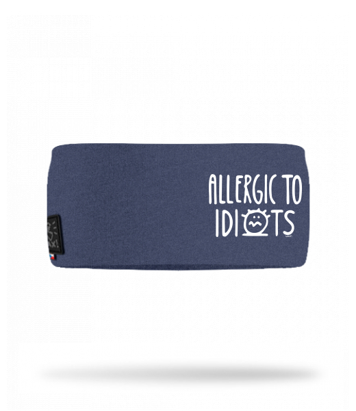 Cotton sports headband for man with design 1354 ALLERGIC TO IDIOTS in color JEANS