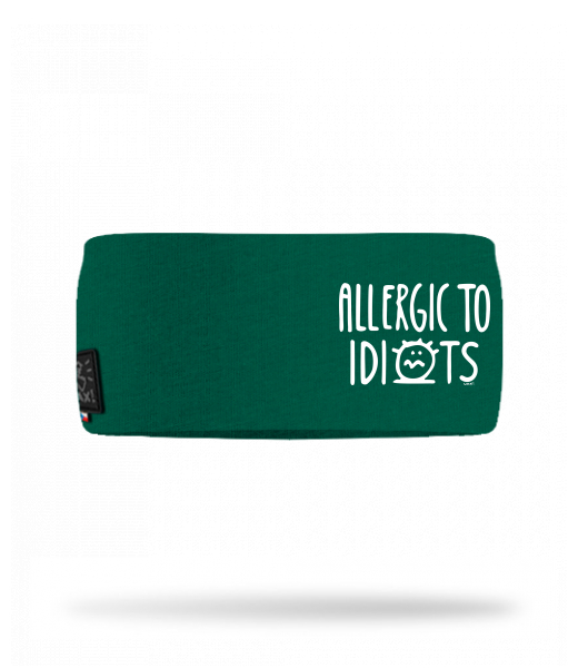 Cotton sports headband for man with design 1354 ALLERGIC TO IDIOTS in color UNIVERSITY GREEN