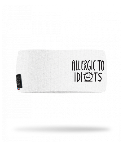 Cotton sports headband for man with design 1354 ALLERGIC TO IDIOTS in color WHITE
