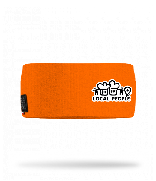 Cotton sports headband for man with design 1359 LOCAL PEOPLE in color SIGNAL ORANGE