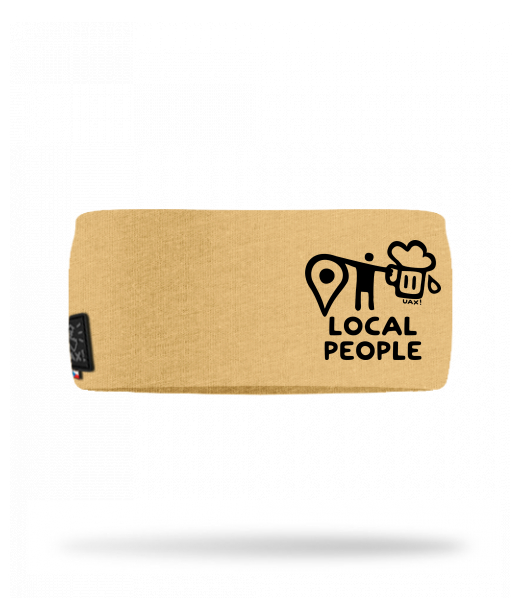 Cotton sports headband for man with design 1360 LOCAL PEOPLE BIG in color MUSTARD