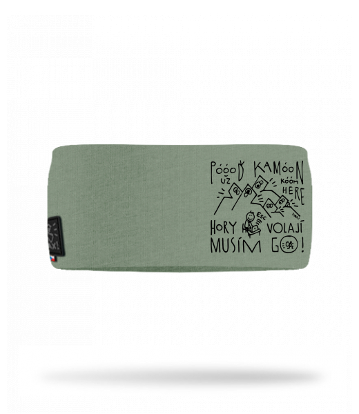 Cotton sports headband for man with design 1368 POOOĎ KAMOON HORY MUSÍM JÍT GO in color OLIVA