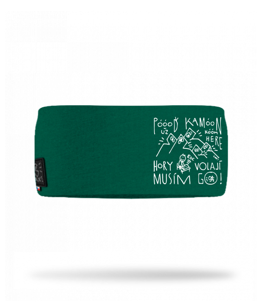 Cotton sports headband for man with design 1368 POOOĎ KAMOON HORY MUSÍM JÍT GO in color UNIVERSITY GREEN