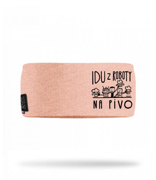 Cotton sports headband for man with design 1369 IDU Z ROBOTY NA PIVO in color PEACH