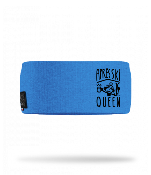 Cotton sports headband for man with design 1371 APRÉS SKI QUEEN in color CAPRI BLUE