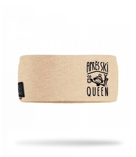 Cotton sports headband for man with design 1371 APRÉS SKI QUEEN in color CARAMEL