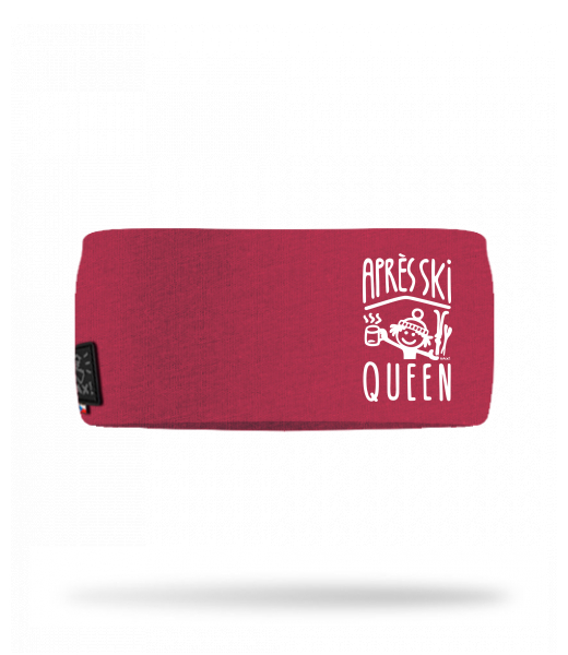 Cotton sports headband for man with design 1371 APRÉS SKI QUEEN in color CHILLY PEPPER RED
