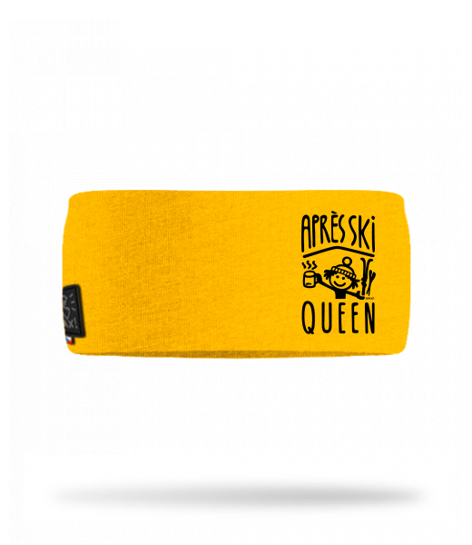 Cotton sports headband for man with design 1371 APRÉS SKI QUEEN in color GOLDEN CREAM