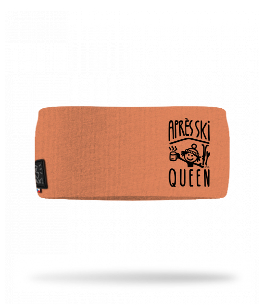 Cotton sports headband for man with design 1371 APRÉS SKI QUEEN in color MANDARIAN ORANGE