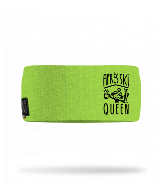 Cotton sports headband for man with design 1371 APRÉS SKI QUEEN in color PARROT GREEN