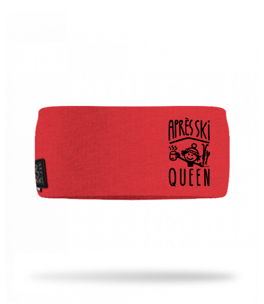 Cotton sports headband for man with design 1371 APRÉS SKI QUEEN in color RED