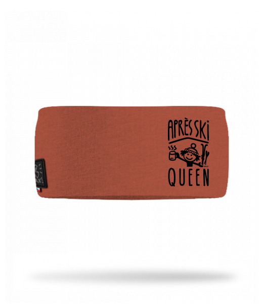 Cotton sports headband for man with design 1371 APRÉS SKI QUEEN in color TERRA