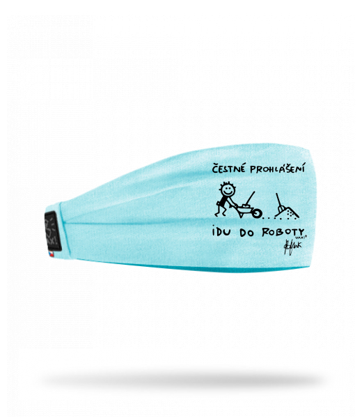 Headband for man with design 1303 ČESTNÉ PROHLÁŠENÍ IDU DO ROBOTY in color PASTEL BLUE