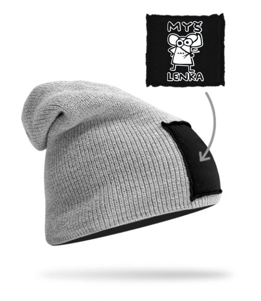 Quality knitted hat BEANIE unisex for man with design 1038 MYŠ LENKA in color GREY/BLACK