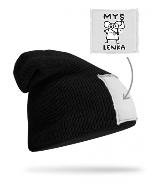 Quality knitted hat BEANIE unisex for man with design 1038 MYŠ LENKA in color BLACK/WHITE