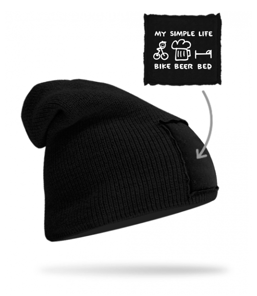 We make sustainable UAX clothing! - hand sewn in the Czech Republic uaxMen uaxAll productsHats and HeadbandsKNITTED HAT BEANIEdesign 1056 - BIKE BEER BEDBLACK/BLACK