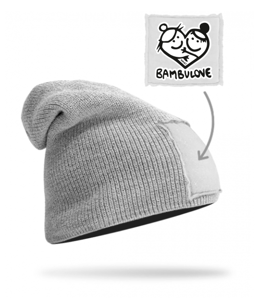 Quality knitted hat BEANIE unisex for man with design 1079 BAMBULOVE in color GREY/WHITE