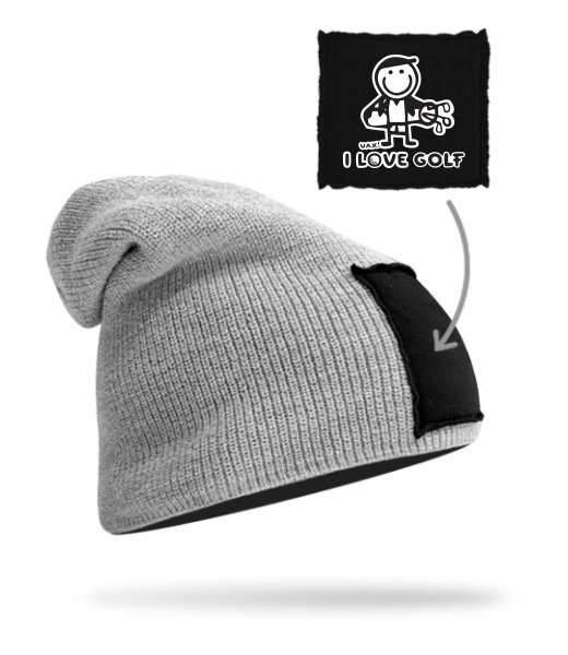 We make sustainable UAX clothing! - hand sewn in the Czech Republic uaxMen uaxAll productsHats and HeadbandsKNITTED HAT BEANIEdesign 1107 - I LOVE GOLFGREY/BLACK