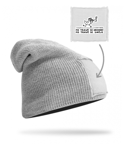 We make sustainable UAX clothing! - hand sewn in the Czech Republic uaxMen uaxAll productsHats and HeadbandsKNITTED HAT BEANIEdesign 1118 - PO TRÁVĚ SE SMĚJEGREY/WHITE