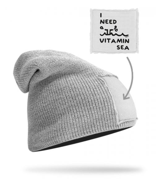 Quality knitted hat BEANIE unisex for man with design 1132 I NEED VITAMIN SEA in color GREY/WHITE