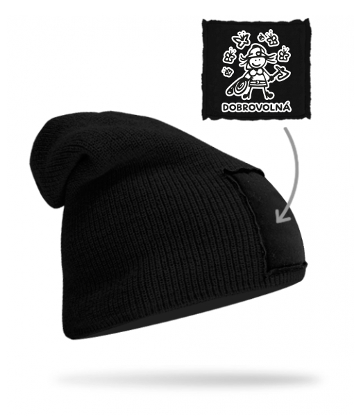 Quality knitted hat BEANIE unisex for man with design 1183 DOBROVOLNÁ in color BLACK/BLACK