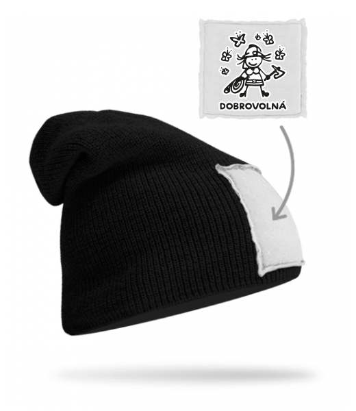 Quality knitted hat BEANIE unisex for man with design 1183 DOBROVOLNÁ in color BLACK/WHITE