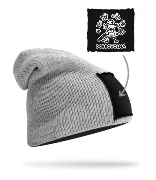 Quality knitted hat BEANIE unisex for man with design 1183 DOBROVOLNÁ in color GREY/BLACK