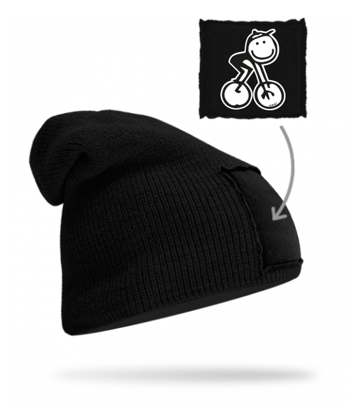 We make sustainable UAX clothing! - hand sewn in the Czech Republic uaxMen uaxAll productsHats and HeadbandsKNITTED HAT BEANIEdesign 1202 - BIKE MANBLACK/BLACK