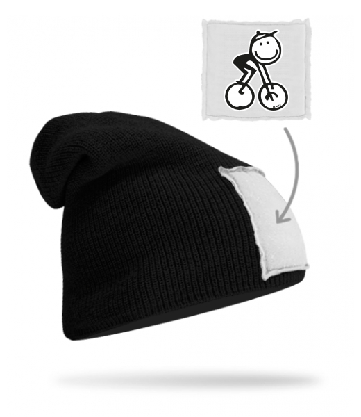 We make sustainable UAX clothing! - hand sewn in the Czech Republic uaxMen uaxAll productsHats and HeadbandsKNITTED HAT BEANIEdesign 1202 - BIKE MANBLACK/WHITE