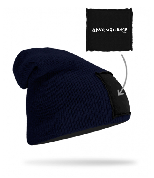 We make sustainable UAX clothing! - hand sewn in the Czech Republic uaxMen uaxAll productsHats and HeadbandsKNITTED HAT BEANIEdesign 1212 - ADVENTUREDARK NAVY/BLACK
