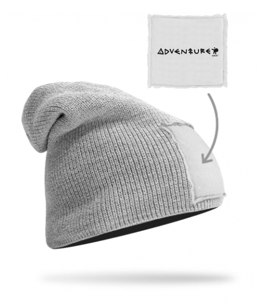 Quality knitted hat BEANIE unisex for man with design 1212 ADVENTURE in color GREY/WHITE