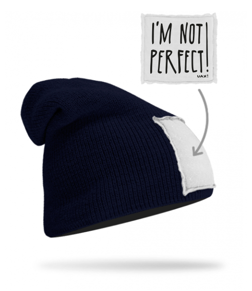 We make sustainable UAX clothing! - hand sewn in the Czech Republic uaxMen uaxAll productsHats and HeadbandsKNITTED HAT BEANIEdesign 1230 - IM NOT PERFECTDARK NAVY/WHITE