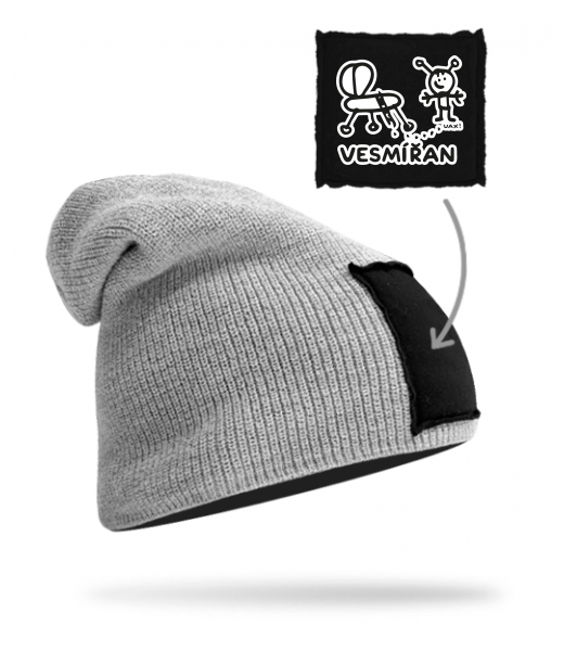 Quality knitted hat BEANIE unisex for man with design 1232 VESMÍŘAN in color GREY/BLACK