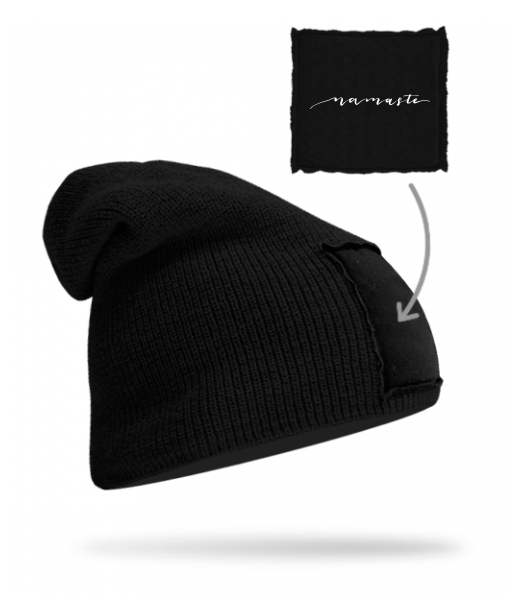 We make sustainable UAX clothing! - hand sewn in the Czech Republic uaxMen uaxAll productsHats and HeadbandsKNITTED HAT BEANIEdesign 1234 - NAMASTEBLACK/BLACK