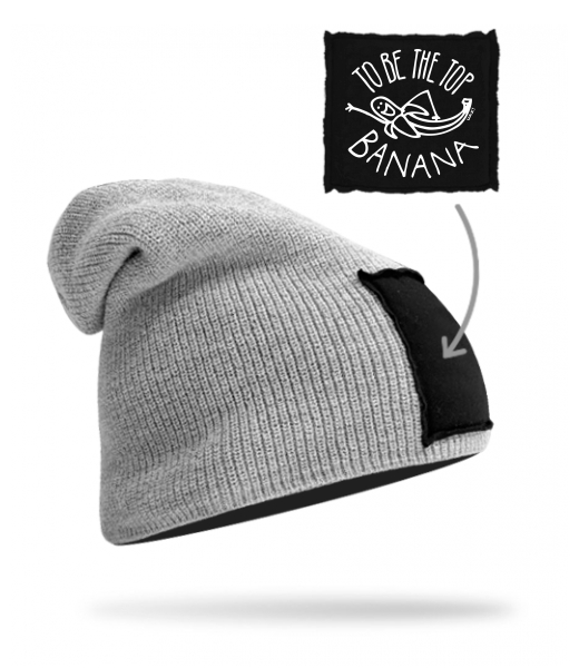 We make sustainable UAX clothing! - hand sewn in the Czech Republic uaxMen uaxAll productsHats and HeadbandsKNITTED HAT BEANIEdesign 1238 - TO BE THE TOP BANANAGREY/BLACK