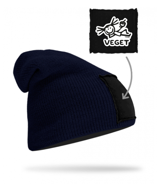 Quality knitted hat BEANIE unisex for man with design 1239 VEGET in color DARK NAVY/BLACK