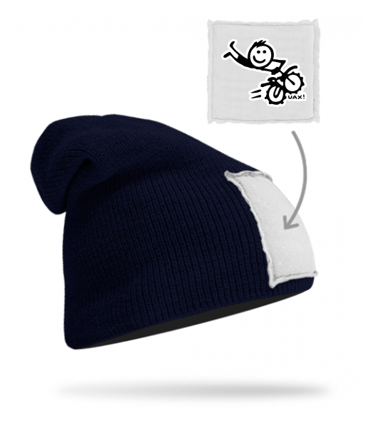 We make sustainable UAX clothing! - hand sewn in the Czech Republic uaxMen uaxAll productsHats and HeadbandsKNITTED HAT BEANIEdesign 1259 - MOTOKROSDARK NAVY/WHITE