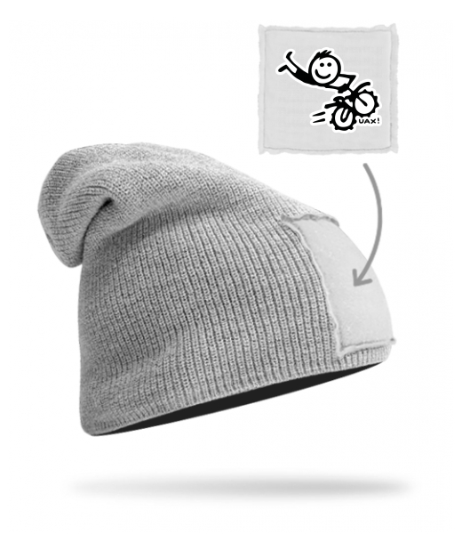 We make sustainable UAX clothing! - hand sewn in the Czech Republic uaxMen uaxAll productsHats and HeadbandsKNITTED HAT BEANIEdesign 1259 - MOTOKROSGREY/WHITE