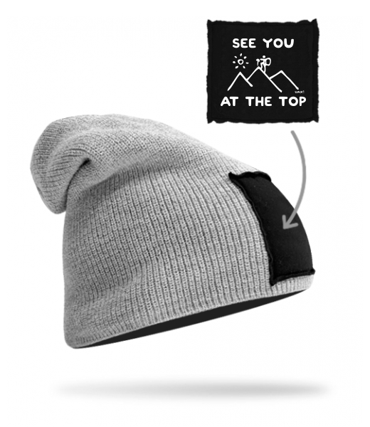 Quality knitted hat BEANIE unisex for man with design 1263 SEE YOU AT THE TOP in color GREY/BLACK