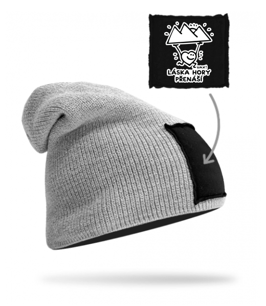 We make sustainable UAX clothing! - hand sewn in the Czech Republic uaxMen uaxAll productsHats and HeadbandsKNITTED HAT BEANIEdesign 1264 - LÁSKA HORY PŘENÁŠÍGREY/BLACK