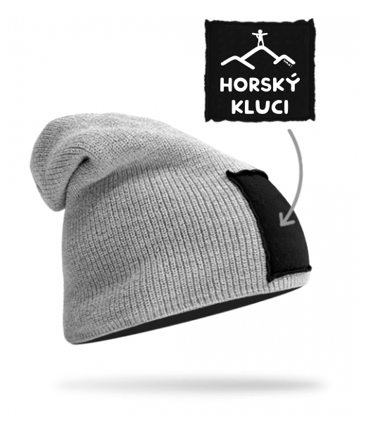 Quality knitted hat BEANIE unisex for man with design 1275 HORSKÝ KLUCI in color GREY/BLACK