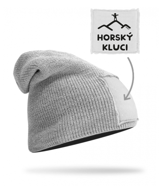 Quality knitted hat BEANIE unisex for man with design 1275 HORSKÝ KLUCI in color GREY/WHITE