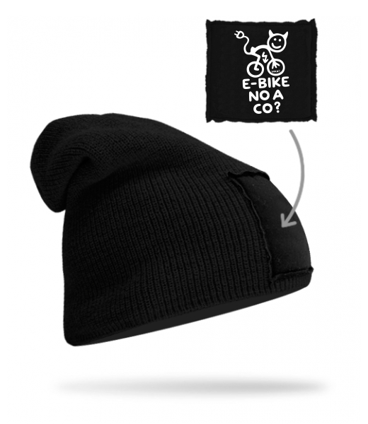 We make sustainable UAX clothing! - hand sewn in the Czech Republic uaxMen uaxAll productsHats and HeadbandsKNITTED HAT BEANIEdesign 1291 - E-BIKE NO A CO?BLACK/BLACK
