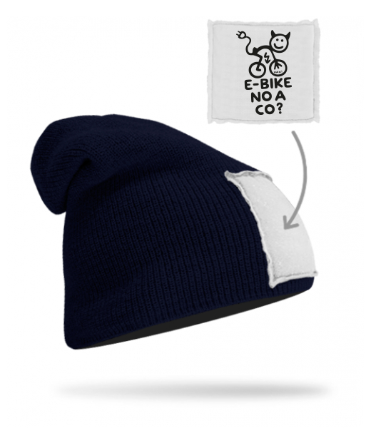 We make sustainable UAX clothing! - hand sewn in the Czech Republic uaxMen uaxAll productsHats and HeadbandsKNITTED HAT BEANIEdesign 1291 - E-BIKE NO A CO?DARK NAVY/WHITE