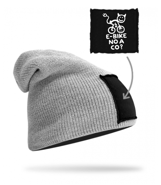We make sustainable UAX clothing! - hand sewn in the Czech Republic uaxMen uaxAll productsHats and HeadbandsKNITTED HAT BEANIEdesign 1291 - E-BIKE NO A CO?GREY/BLACK