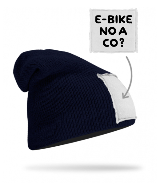 We make sustainable UAX clothing! - hand sewn in the Czech Republic uaxMen uaxAll productsHats and HeadbandsKNITTED HAT BEANIEdesign 1292 - E-BIKE NO A CO?DARK NAVY/WHITE