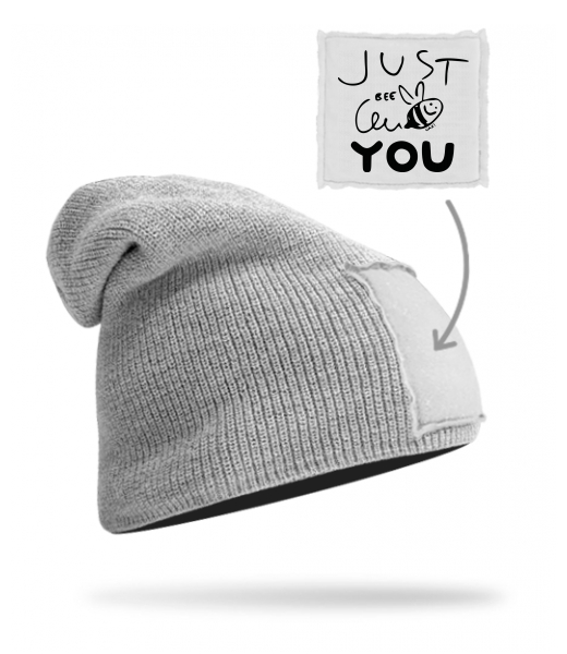 We make sustainable UAX clothing! - hand sewn in the Czech Republic uaxMen uaxAll productsHats and HeadbandsKNITTED HAT BEANIEdesign 1294 - JUST BEE YOUGREY/WHITE