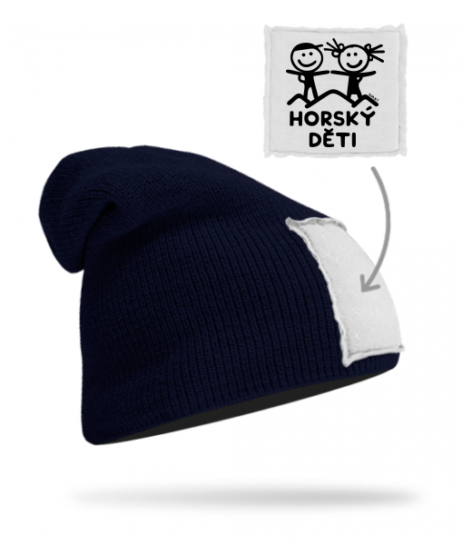 Quality knitted hat BEANIE unisex for man with design 1300 HORSKÝ DĚTI in color DARK NAVY/WHITE