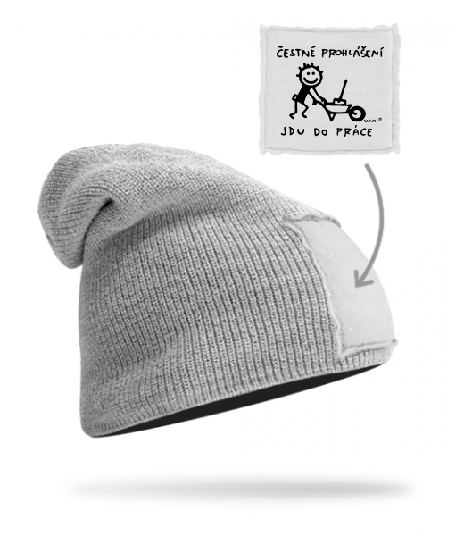 Quality knitted hat BEANIE unisex for man with design 1305 ČESTNÉ PROHLÁŠENÍ JDU DO PRÁCE 2 in color GREY/WHITE