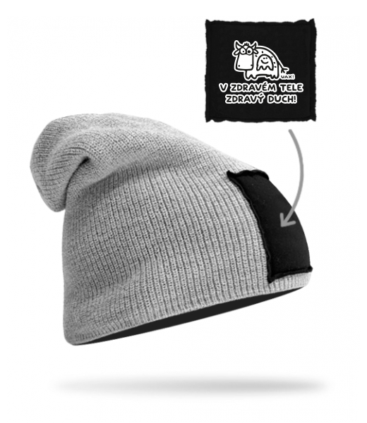 We make sustainable UAX clothing! - hand sewn in the Czech Republic uaxMen uaxAll productsHats and HeadbandsKNITTED HAT BEANIEdesign 1309 - V ZDRAVÉM TELE ZDRAVÝ DUCHGREY/BLACK